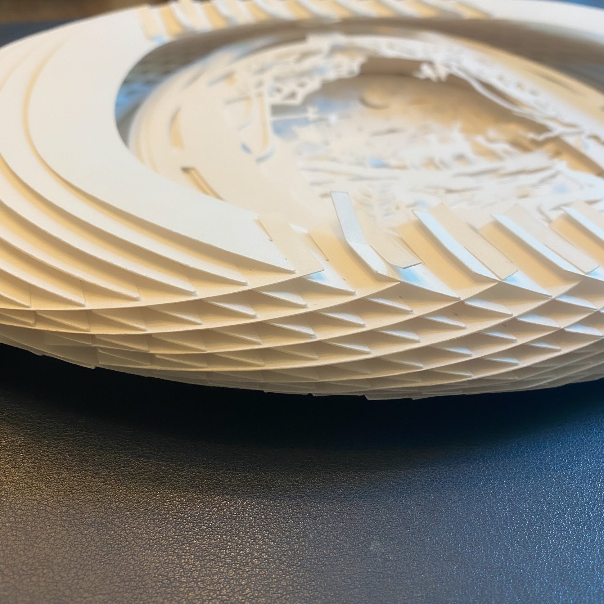 This piece is made with 40 different layers of white paper, and it could be folded. It comes with a light with remote. Images are only for reference.