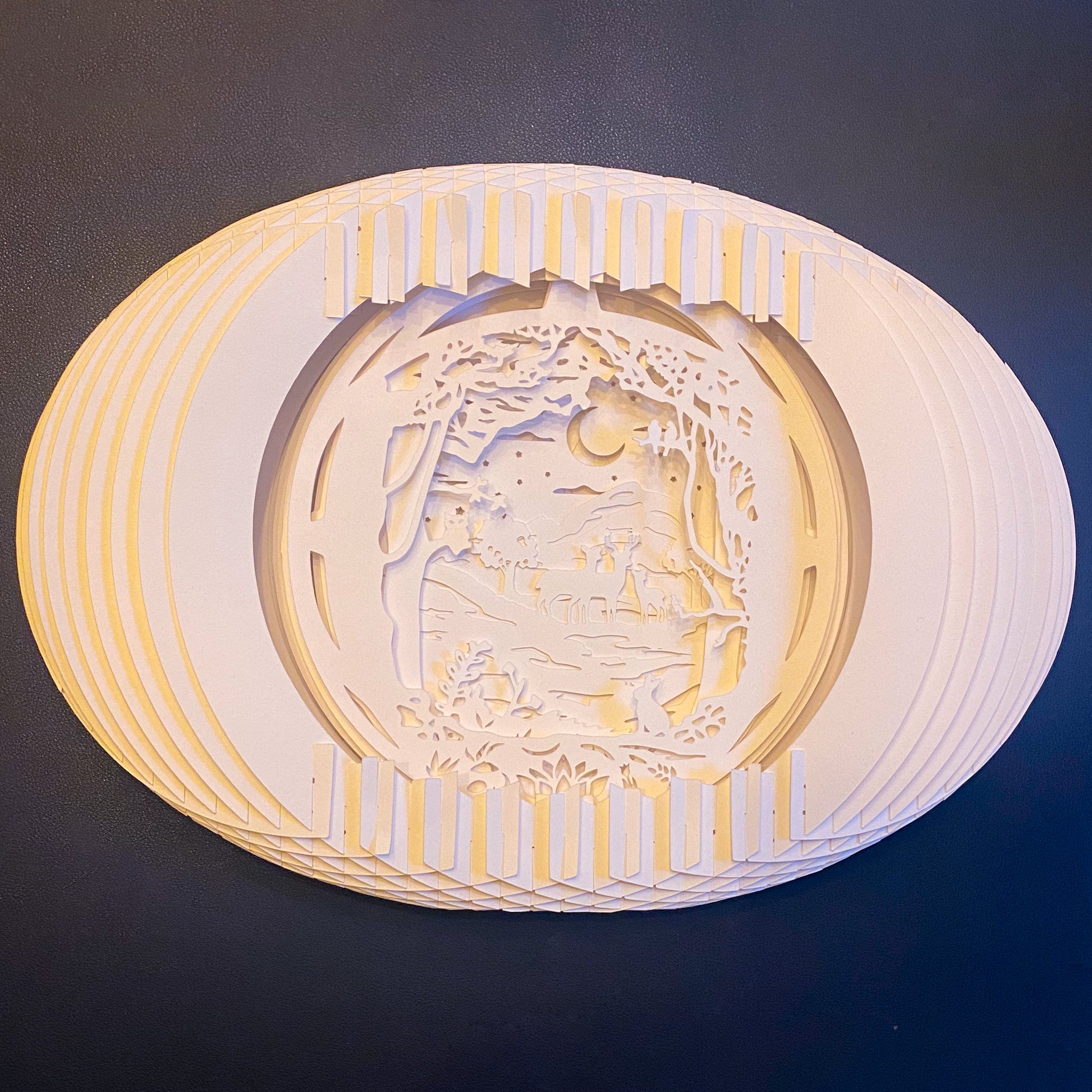 This piece is made with 40 different layers of white paper, and it could be folded.