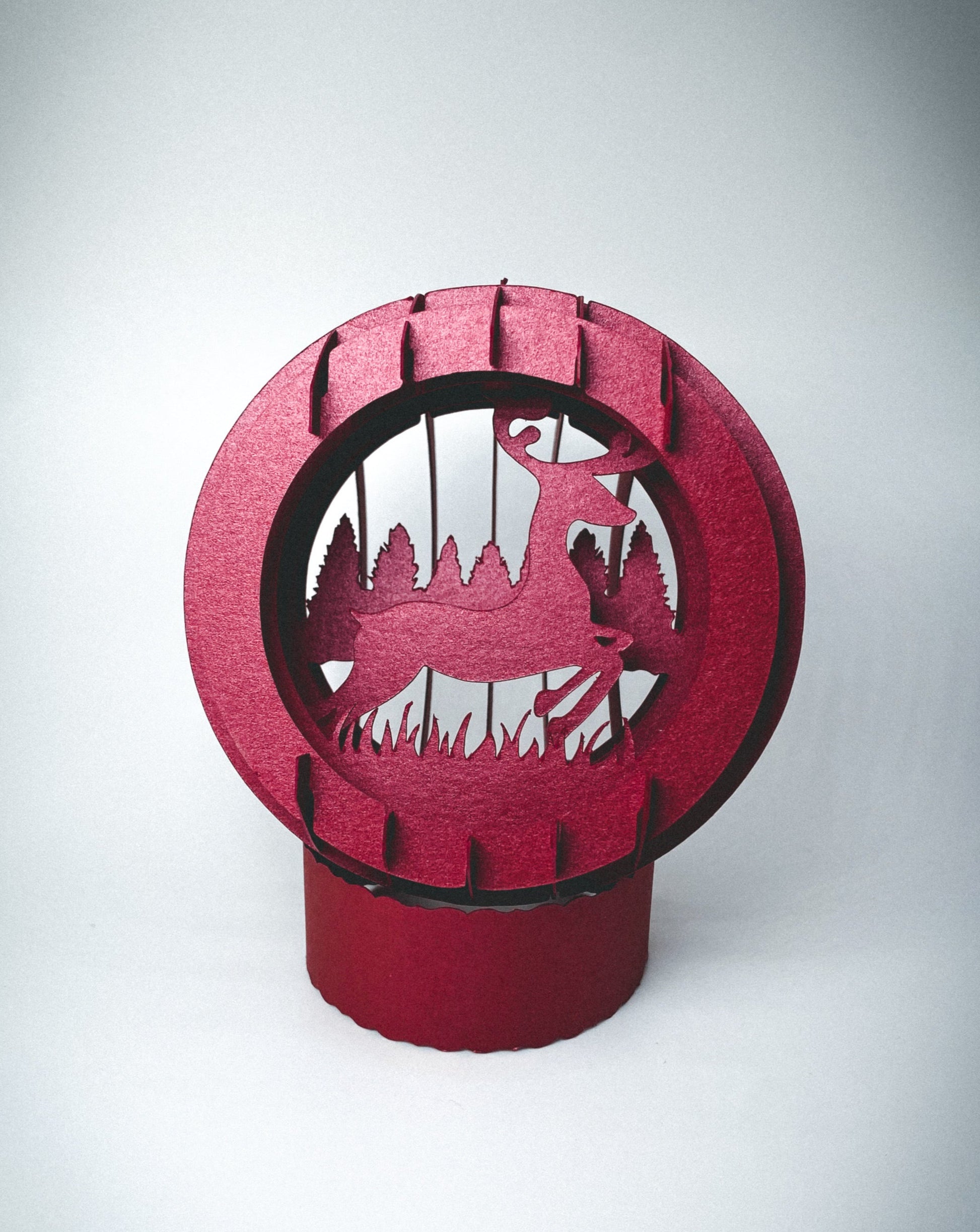 This festive reindeer ornament is a sight to behold! Crafted with 100lb cardstock and Italian pearlescent paper, it measures 3"x3"x3" and comes carefully folded and packaged for your convenience. No matter where you hang it, it's sure to add a touch of beauty to the space.