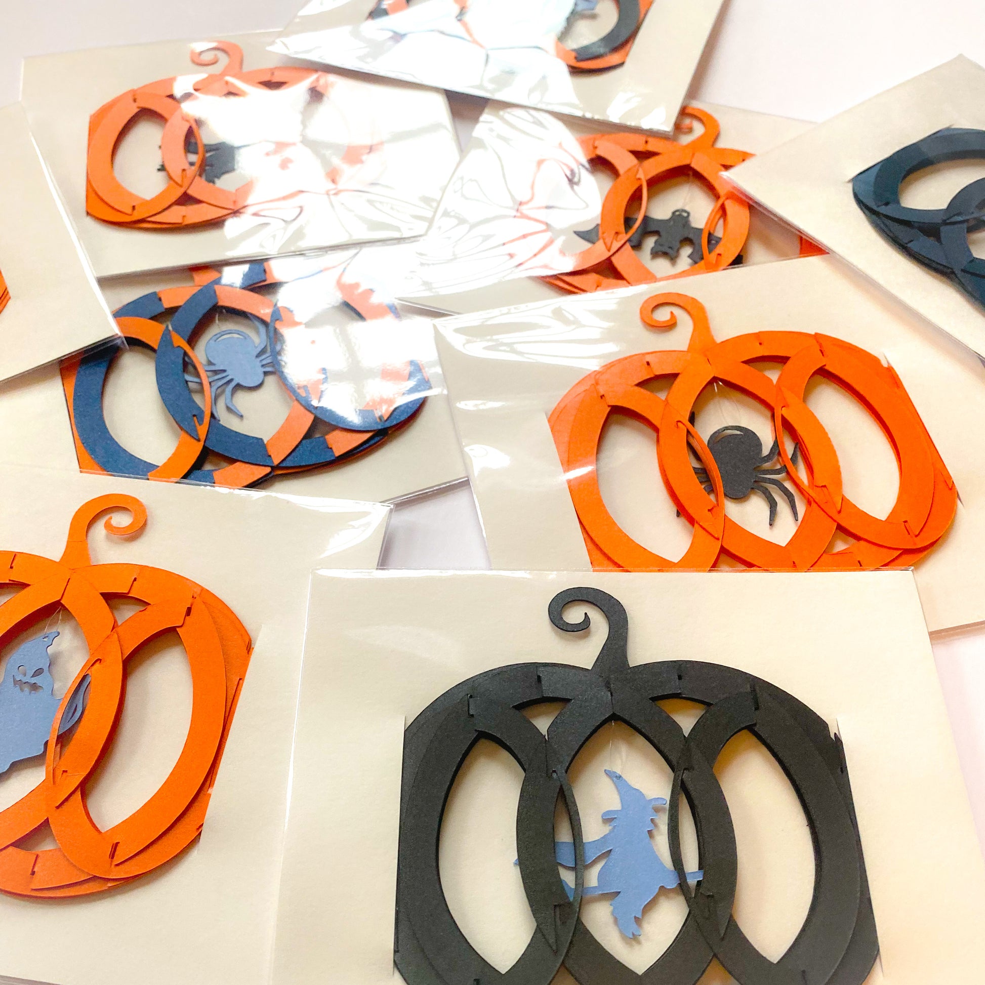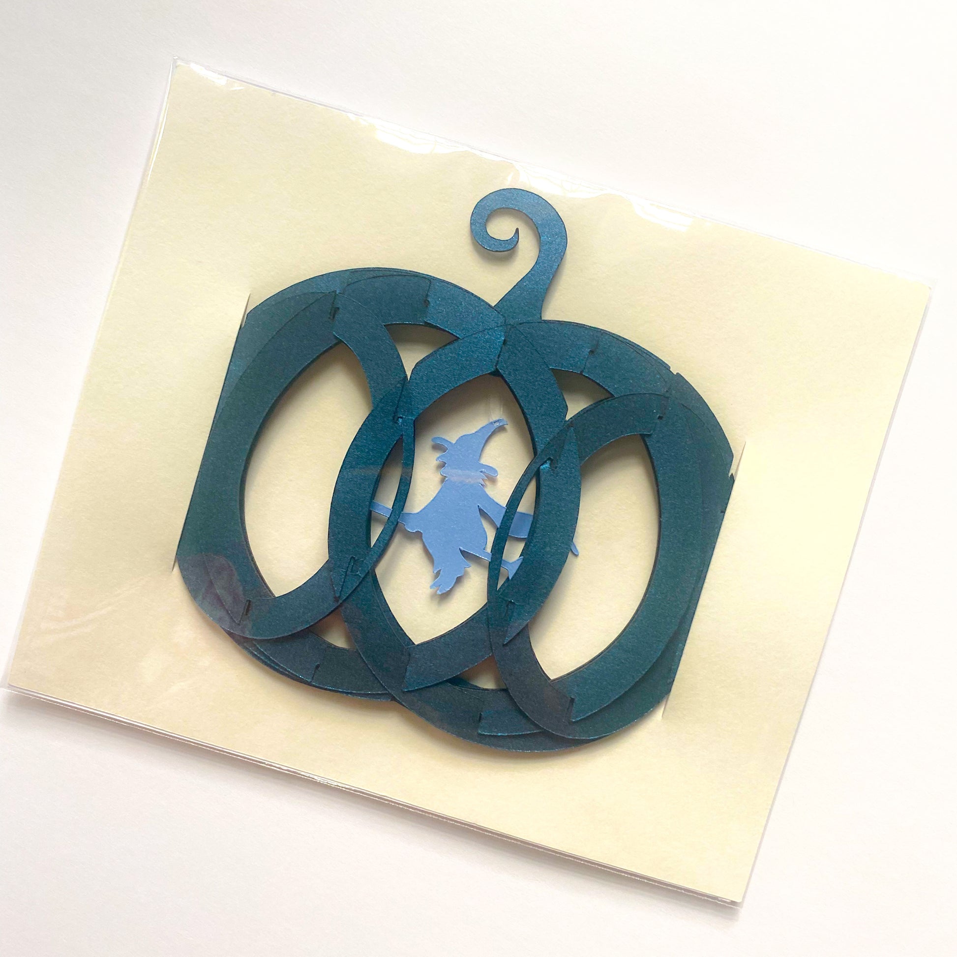 This Witch-Pumpkin Ornament is misteriously marvelous! Crafted with Kirigami technique and 100LB pearlescent Italian paper, it'll make a bewitching addition to any Halloween soiree. Unveil this 4" x 4.5" x 4" captivating pumpkin and you'll find a witch, lurking within! Conjure up some style and mystique with this spooky-sweet ornament!