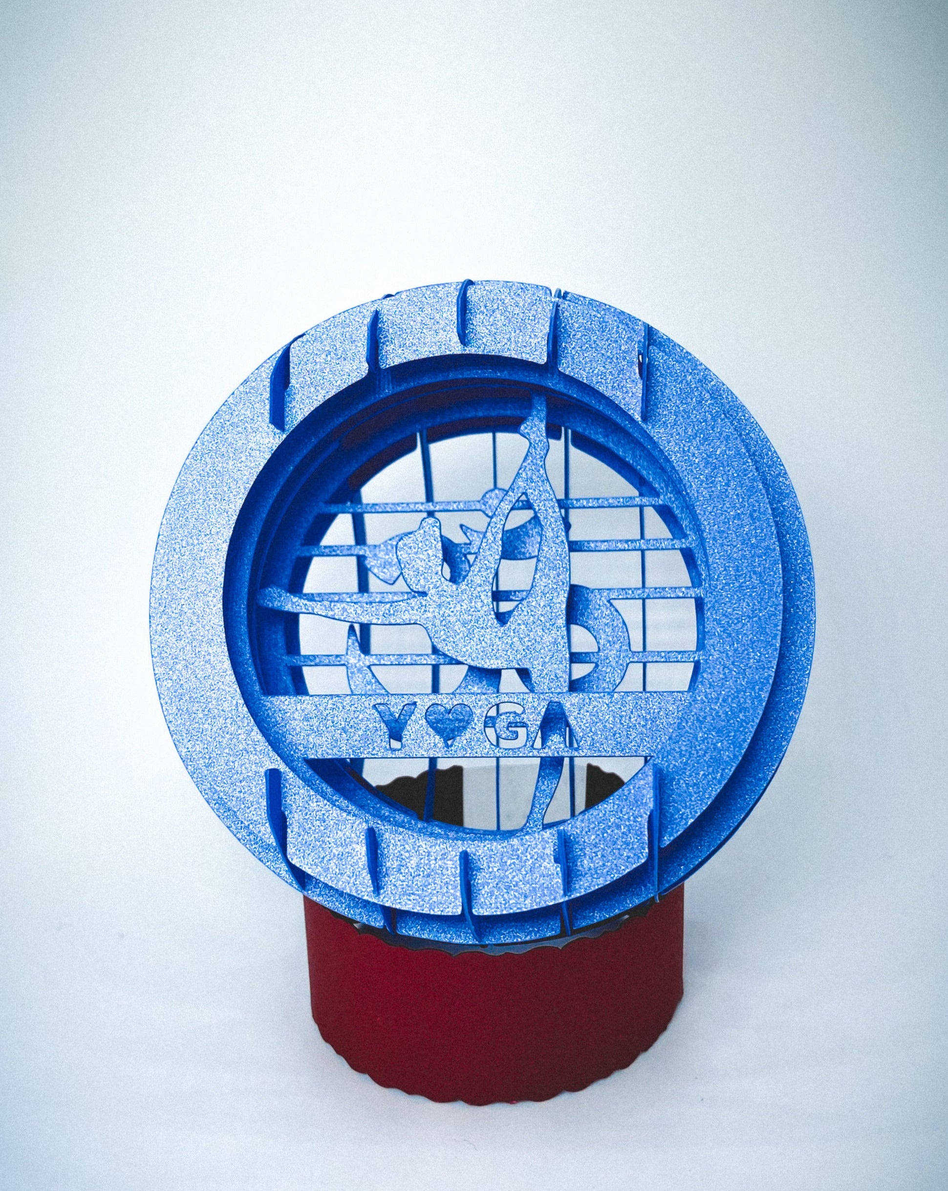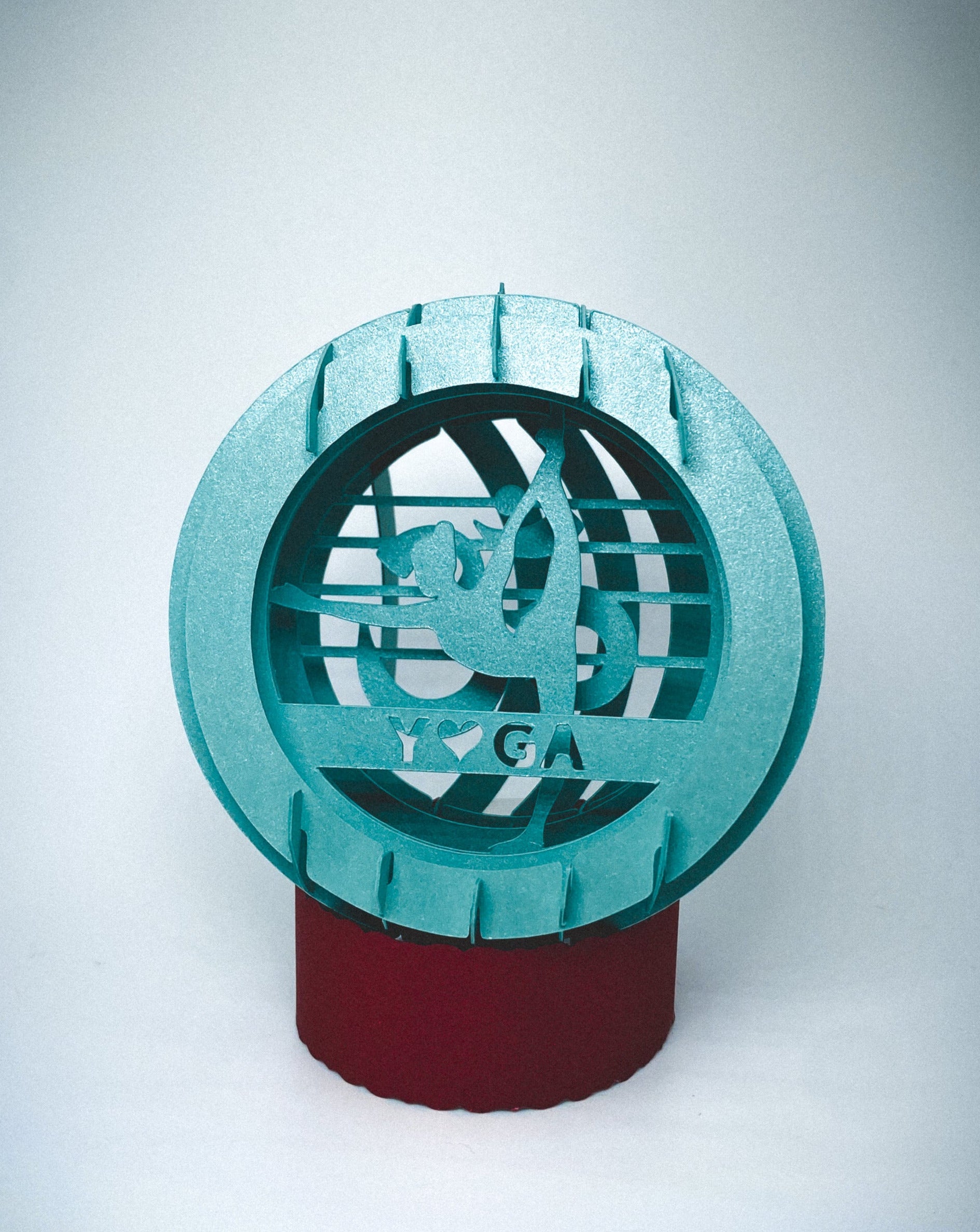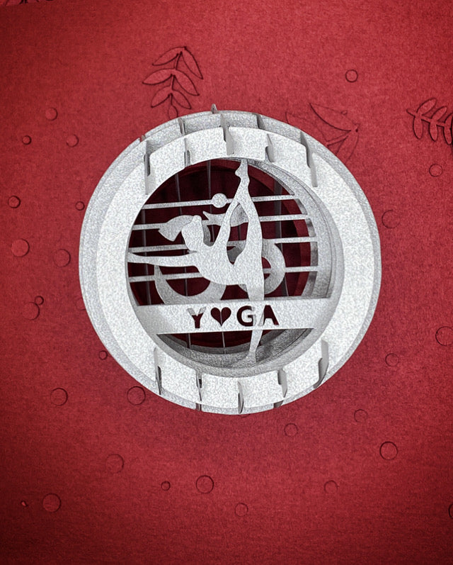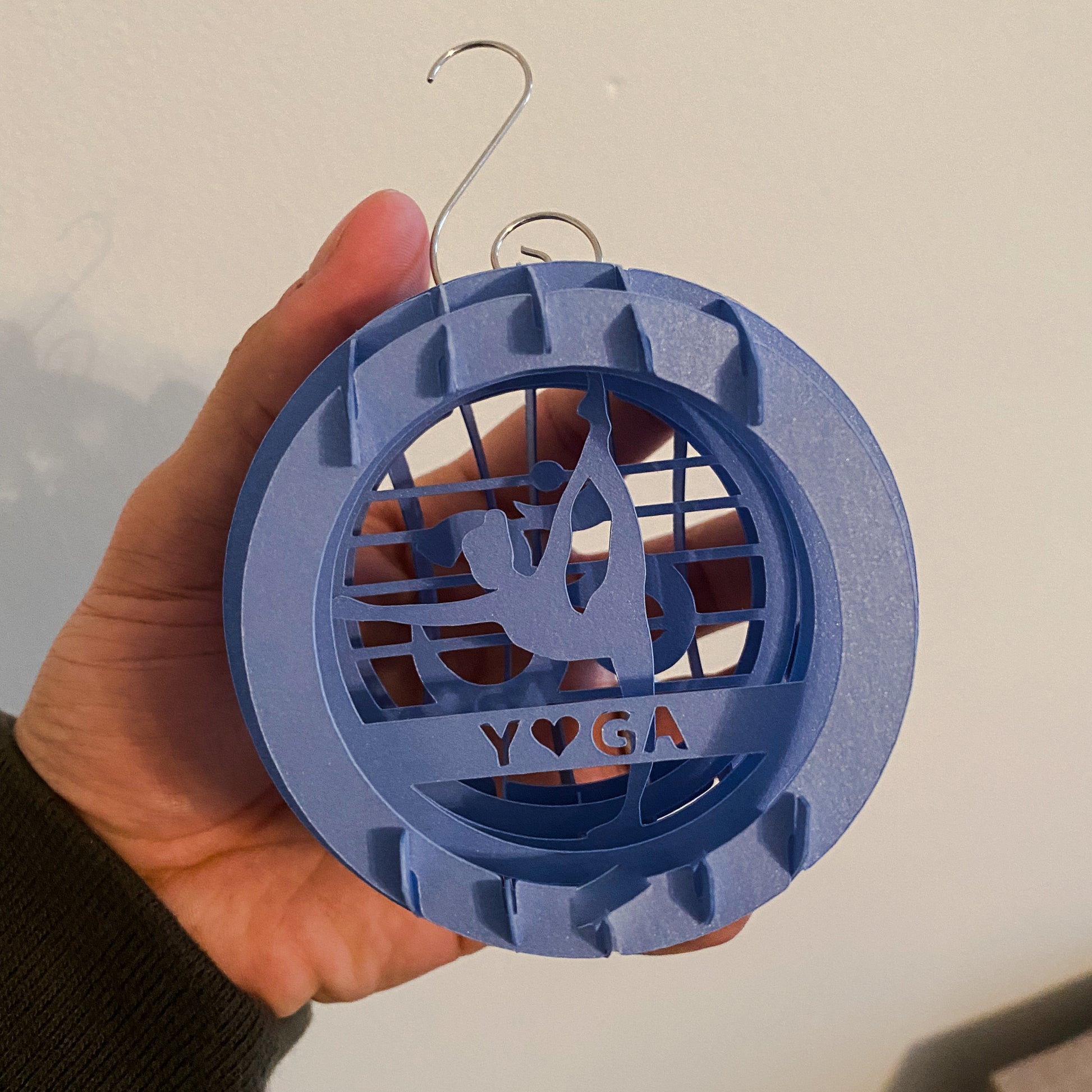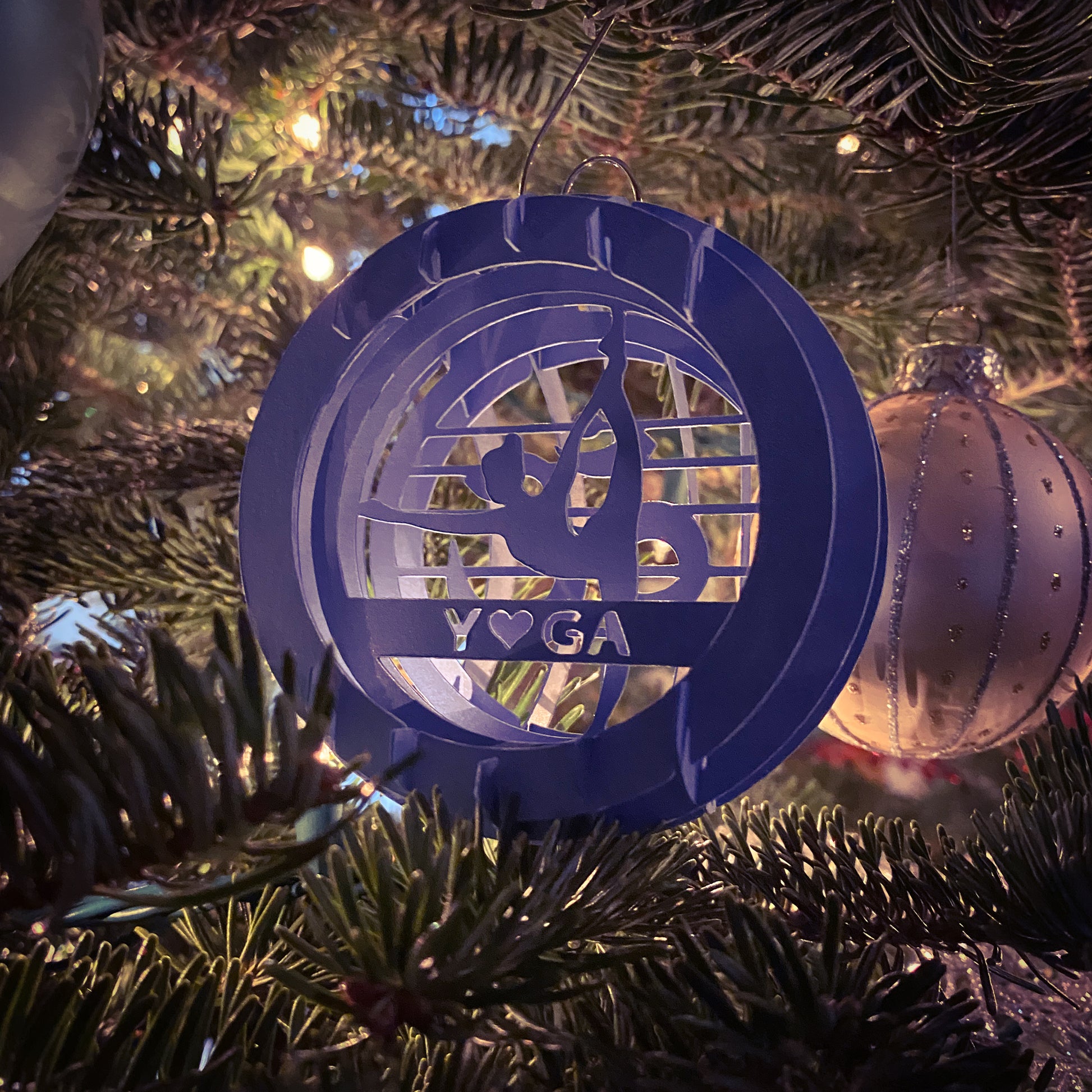 This yoga ornament is a sight to behold! Crafted with 100lb cardstock and Italian pearlescent paper, it measures 3"x3"x3" and comes carefully folded and packaged for your convenience. No matter where you hang it, it's sure to add a touch of beauty to the space.